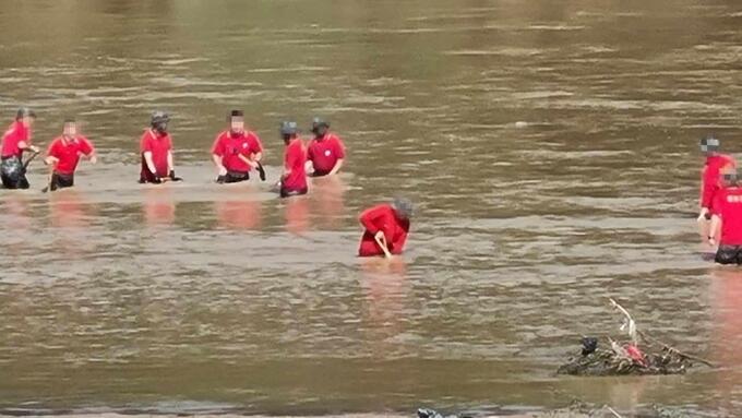 이에 해병대원들이 구명조끼 없이 적색티만 입고 강으로 들어가 허리춤까지 차는 물속에서 실종자 수색작업을 하는 상황이 펼쳐졌다는 것.