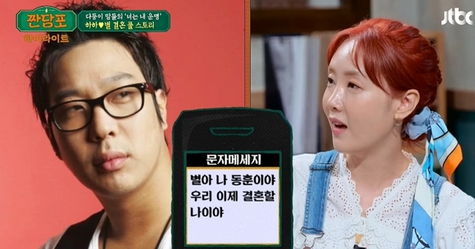 별은 1일 방송한 JTBC 예능 프로그램 ‘짠당포’에 출연해 하하와 결혼하게 된 과정에 대해 이야기했다.