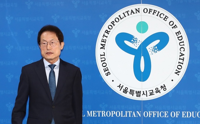 조희연 서울시교육감이 지난 2일 서울 종로구 서울시교육청에서 열린 교원의 교육활동 보호 강화를 위한 추진 방안 발표 관련 기자간담회에 참석하고 있다. 뉴스1