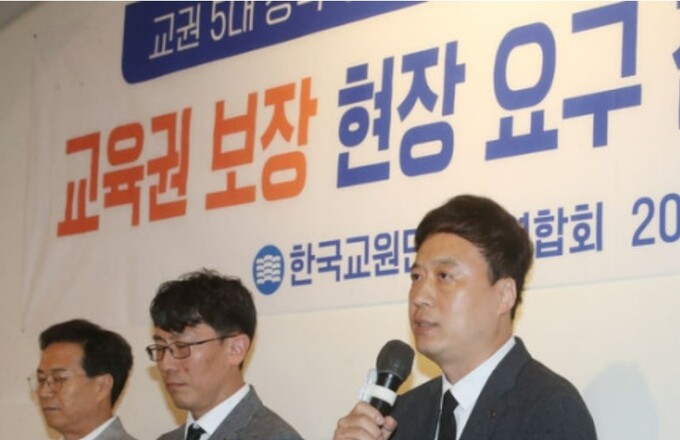 정 회장은 "교권침해 학부모에 대해 고발, 과태료 부과 등 엄중 조치할 수 있도록 교원지위법을 개정해야 한다"며 "형사사건 수준의 교권침해는 교육감이 고발하도록 이행력을 담보하고, 교사가 직접 민원에 시달리지 않도록 민원창구 단일화 방안을 반드시 마련해 달라"고 밝혔다.