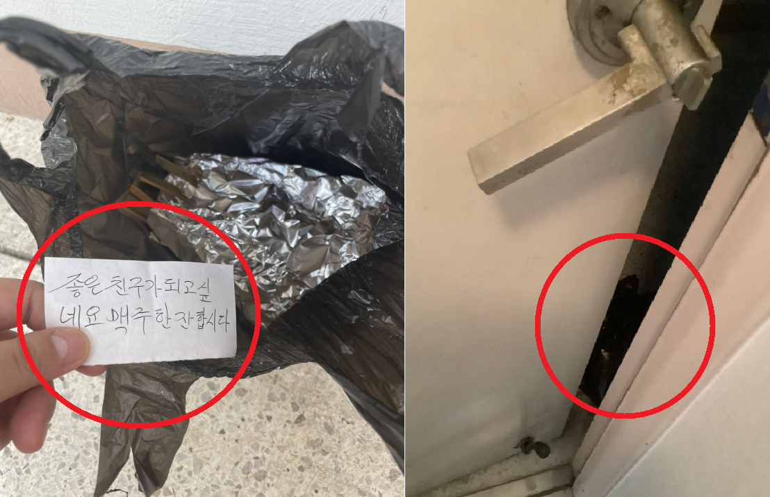 이후 “관리실에 연락해 집 문 앞에 둔 물건을 경비원을 통해 받았는데 닭꼬치 6개 등 1인분의 음식과 쪽지였다”면서 “이번 일만으로 단정하긴 어렵지만 밤 시간 ‘맥주’에서 자신은 성적 함의를 읽을 수밖에 없었다”고 토로했다.