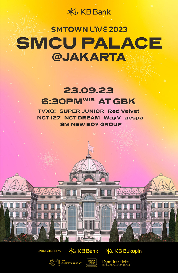SM엔터테인먼트의 글로벌 공연인 ‘에스엠타운 라이브 2023 SMCU 팰리스 @자카르타 위드 KB 뱅크(SMTOWN LIVE 2023 SMCU PALACE @JAKARTA with KB Bank·포스터)’가 다음달 23일 인도네시아 자카르타의 겔로라 붕 카르노 메인 스타디움(Gelora Bung Karno Main Stadium)에서 개최된다. 2012년 이후 약 11년 만에 자카르타에서 열리는 ‘에스엠타운 라이브’ 오프라인 공연이다.