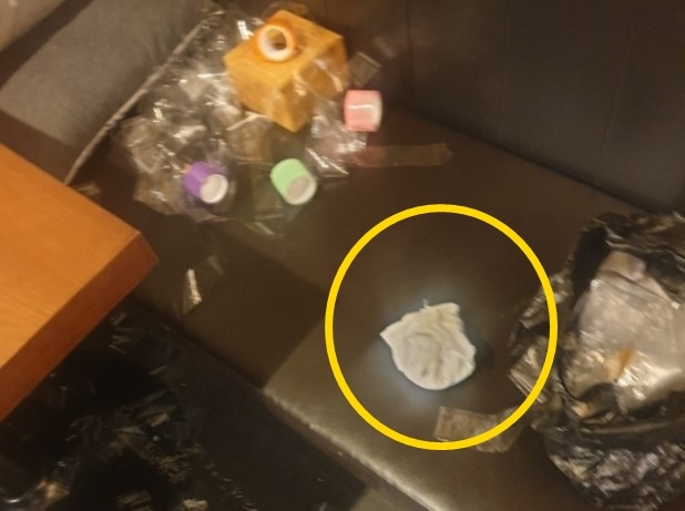 첨부된 사진을 보면 실제로 테이블과 소파 위, 바닥에 각종 쓰레기가 어지럽게 나뒹굴고 있다.