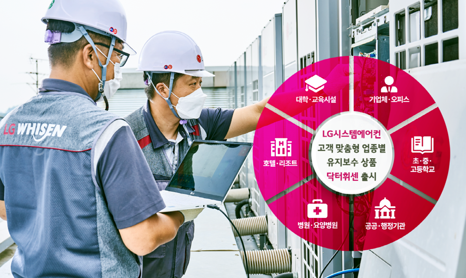 LG전자 시스템에어컨과 칠러 및 공조 설비의 서비스 유지·보수를 전담하는 '하이엠솔루텍(대표 유광열)'이 B2B 고객들의 세분화된 니즈에 맞춘 '닥터휘센 업종별 고객맞춤형 유지보수상품'을 출시했다고 9일 밝혔다. 닥터휘센은 하이엠솔루텍의 전문성과 기술력을 기반으로 한 LG전자 휘센 시스템에어컨의 유지보수 브랜드다.