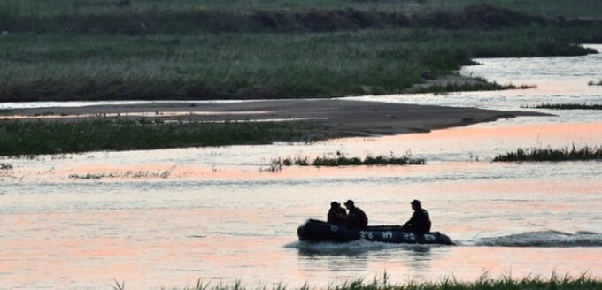 해병대원과 소방이 지난 7월 19일 경북 예천군 호명면 내성천에서 수색 중 급류에 휩쓸려 실종된 해병대원을 찾고 있는 모습. 뉴시스
