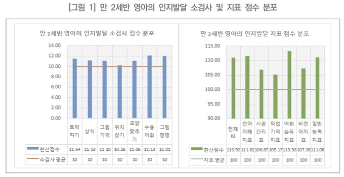 12일 연합뉴스와 육아정책연구소의 '이슈페이퍼' 최근호 '코로나19 팬데믹을 경험한 영유아의 발달현황'(최은영)에 따르면 이 연구소의 연구진은 작년 9월22일~10월31일 만 2세반 영아와 만 5세반 유아 각 100명씩을 대상으로 인지발달 검사(K-WPPSI-Ⅳ)과 적응행동 검사(K-Vineland-2)를 실시했다.