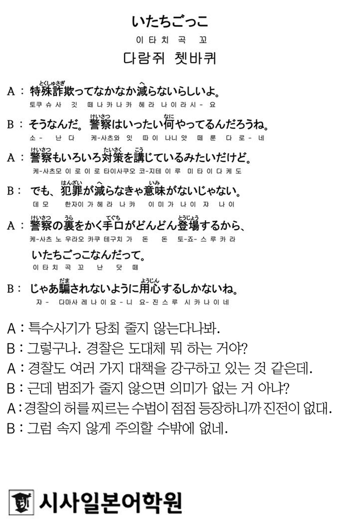 [시사일본어학원의 초단기 일본어 회화] 다람쥐 쳇바퀴 입력 : 2023-08-15 18:16:31 수정 : 2023-08-15 18:16:30 구글 네이버 유튜브 Copyright ⓒ 세계일보. 무단 전재 및 재배포 금지 세계일보