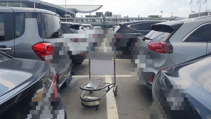커다란 여행용 가방 4개를 트렁크에 싣는 스포츠유틸리티차량(SUV) 옆 공항 카트 두 대가 눈에 띄었다. 차에 가방을 실은 차주는 트렁크 문을 닫더니 일행과 카트를 하나씩 끌고는 보관소로 향했다.