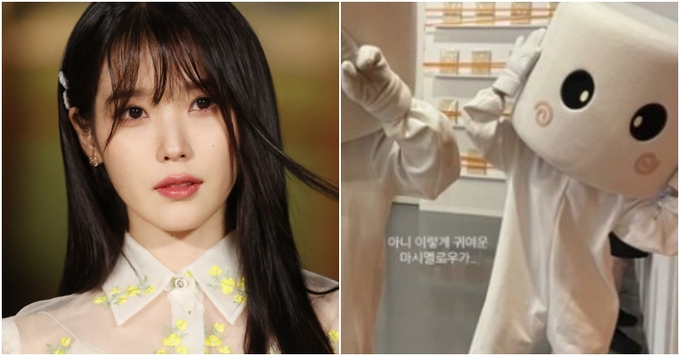 지난 16일 여러 온라인 커뮤니티에는 아이유가 마시멜로 탈을 쓰고 전시회 ‘순간’에 나타났다는 이야기가 퍼졌다.