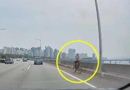 자동차 전용 도로인 서울 강변북로에서 자전거를 타고 역주행한 운전자가 따가운 시선을 받았다.
