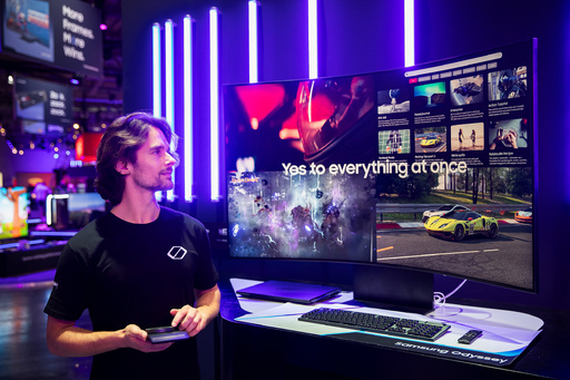삼성전자 모델이 독일 쾰른에서 열린 ‘게임스컴 2023’에서 차세대 게이밍 모니터 오디세이 네오 G9을 소개하고 있다. 삼성전자가 오는 27일(현지시간)까지 열리는 ‘게임스컴 2023’에서 공개한 오디세이 아크는 3개의 HDMI 포트 외 1개의 DP(디스플레이포트) 포트를 추가해 IT 기기 연결성을 높였다. 또 KVM(키보드, 비디오 모니터, 마우스) 스위치 기능을 탑재해 하나의 키보드·마우스로 최대 4대의 PC까지 제어할 수 있다.