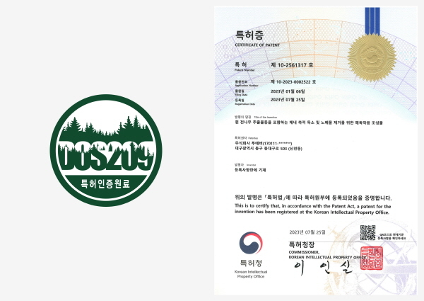 이번에 취득한 특허의 공식명칭은 ‘DOS209’로, 3가지 식물(드레곤 헤드 Dragon Head, 오크라 Okra, 흰 전나무 Silver fir)에서 추출한 식물성 천연물질을 오랜 실험과 테스트를 통해 최적의 배합비로 완성했다.