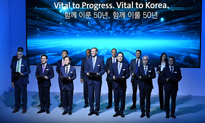 코닝은 1일 충남 아산 탕정 디스플레이시티 코닝정밀소재 2단지에서 ‘한국 투자 50주년 기념행사’를 열고 2028년까지 15억달러(약 2조원)를 투자한다는 계획을 밝혔다.