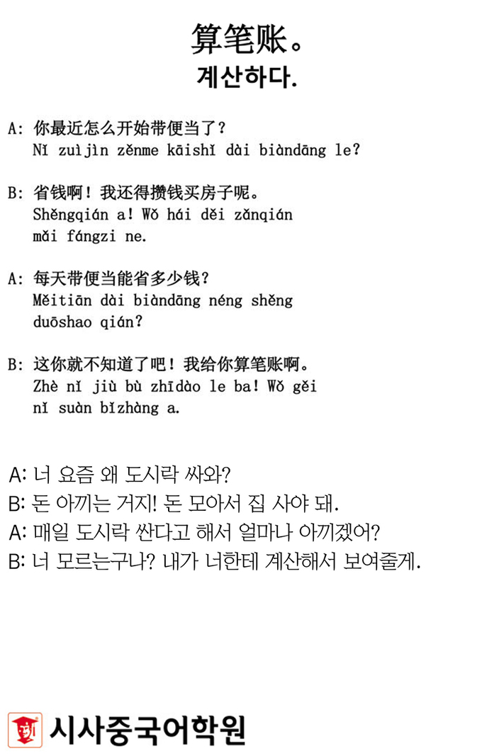 [시사중국어학원의 리얼 중국어 회화] 계산하다. 입력 : 2023-09-04 18:20:55 수정 : 2023-09-04 18:20:54 구글 네이버 유튜브 Copyright ⓒ 세계일보. 무단 전재 및 재배포 금지 세계일보