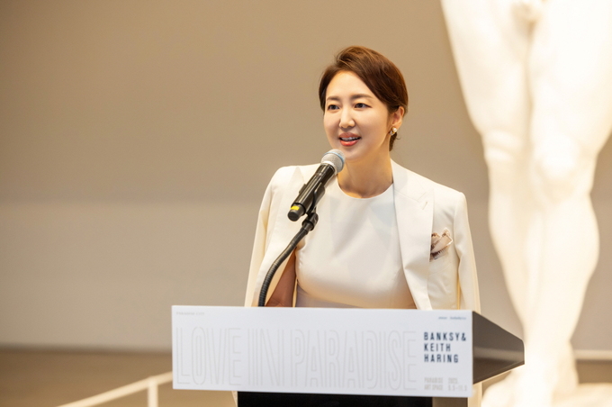 4일 저녁 인천 영종도 파라다이스시티 ‘파라다이스 아트 스페이스’에서 진행된 ‘파라다이스 아트 나이트’ 오프닝 행사에서 최윤정 파라다이스문화재단 이사장이 인사말을 하고 있다. ‘파라다이스 아트 나이트’는 다가오는 ‘2023 프리즈 서울’을 기념해 마련한 행사로, 파라다이스시티가 소더비와 협업해 오는 11월 5일까지 개최하는 ‘러브 인 파라다이스:뱅크시 앤 키스 해링’ 展의 프리뷰와 전야제 파티로 진행됐다. 주요 관계자들이 참석한 가운데 열린 이날 행사는 갈라 디너, 국내외 유수 아티스트 공연 등 풍성한 즐길 거리로 채워졌다.