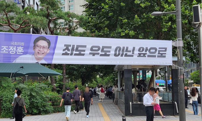 세계일보 취재에 따르면 5일 시대전환 조정훈 의원은 서울 종로구와 마포구 두 곳에 현수막을 내걸었다. 비례대표인 조 의원은 마포와 서대문, 동작 등 여러 지역에 가능성을 열어두고 오랜 시간 내년 총선 출마 지역구를 고심해 왔다. 총선이 가까워져 오는 시점에서 지역구에 현수막을 내건 것은 사실상 해당 지역구 출마를 진지하게 고려하고 있다는 뜻으로 볼 수 있기 때문에 조 의원이 최종 후보지를 종로와 마포 두 곳으로 좁히고 몸풀기에 돌입한 것으로 해석된다.