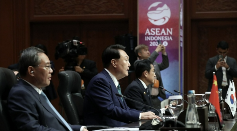 [속보] 尹 “국제사회가 北 핵·미사일 개발 좌시하지 않아야” 입력 : 2023-09-06 17:56:25 수정 : 2023-09-06 17:56:24 김경호 기자 stillcut@segye.com 구글 네이버 유튜브 윤석열 대통령이 6일(현지시간) 인도네시아 자카르타 컨벤션 센터(JCC)에서 열린 아세안+3(한중일) 정상회의에서 발언하고 있다. 자카르타=연합뉴스 [속보] 尹 “국제사회가 北 핵·미사일 개발 좌시하지 않아야” 김경호 기자 Copyright ⓒ 세계일보. 무단 전재 및 재배포 금지 세계일보 김경호