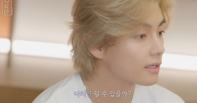 쉴 틈 없는 현실에 뷔의 마음은 무너져 내렸다. 그는 “부정적이고 힘든 마음이 가득해 이 상태로는 아무것도 안될 것 같은데, (쉴 수 있는) 방법을 생각하다 ‘다치면 쉴 수 있을까’라고 생각한 적도 있다. 그때의 저를 바꿔주고 싶다”고 말했다.