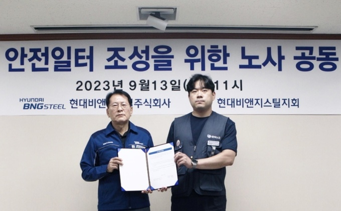이날 행사는 이선우 현대비앤지스틸 안전담당 대표이사와 조재승 금속노조 현대비앤지스틸 지회장 등 노사 대표가 참여한 가운데 진행됐다.