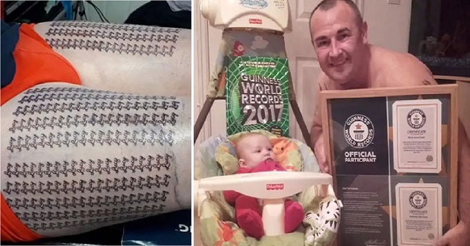 몸에 딸의 이름을 총 667번 새긴 영국 남성이 기네스북에 올랐다.