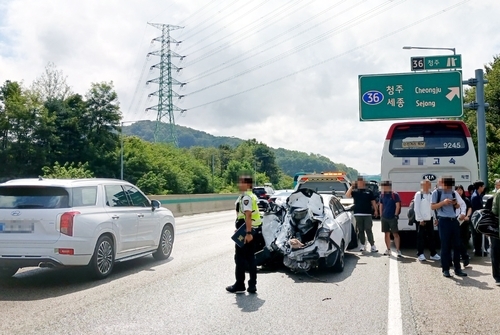 16일 오전 10시 20분께 청주시 흥덕구 강내면 경부고속도로 부산 방향 청주나들목 인근에서 고속버스, 승용차, 화물차 등 차량 8대가 연쇄 추돌했다.