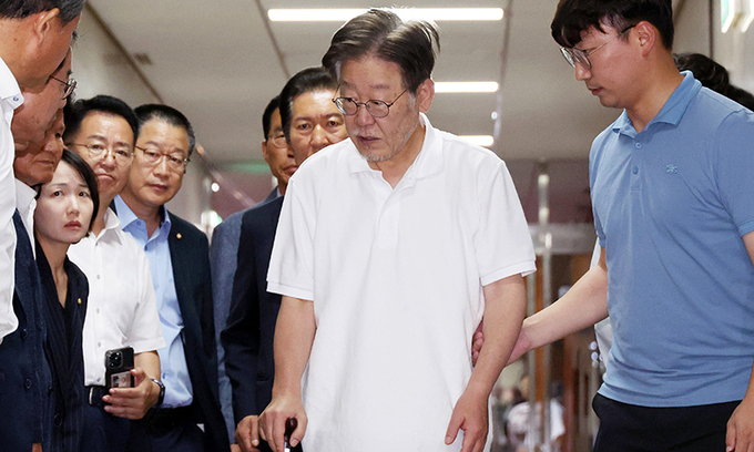 의지 굽히지 않는 李 입력 : 2023-09-18 01:44:46 수정 : 2023-09-18 01:44:45 구글 네이버 유튜브 단식 18일째인 더불어민주당 이재명 대표가 17일 국회에서 단식 중단을 촉구하는 의원들 앞을 지나고 있다. 이 대표가 의식을 잃는 쇼크가 언제든 올 수 있을 정도의 상태인 것으로 전해지자 민주당 지도부는 이날 강제 입원을 거론하고 나섰다. <뉴시스>뉴시스> Copyright ⓒ 세계일보. 무단 전재 및 재배포 금지 뉴시스