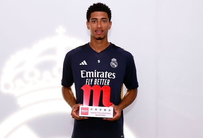 18일(현지시간) 레알 마드리드는 홈페이지를 통해 “주드 벨링엄이 8월의 ‘마호우 5스타 플레이어’(Mahou Cinco Estrellas Player)에 선정됐다”고 밝혔다.