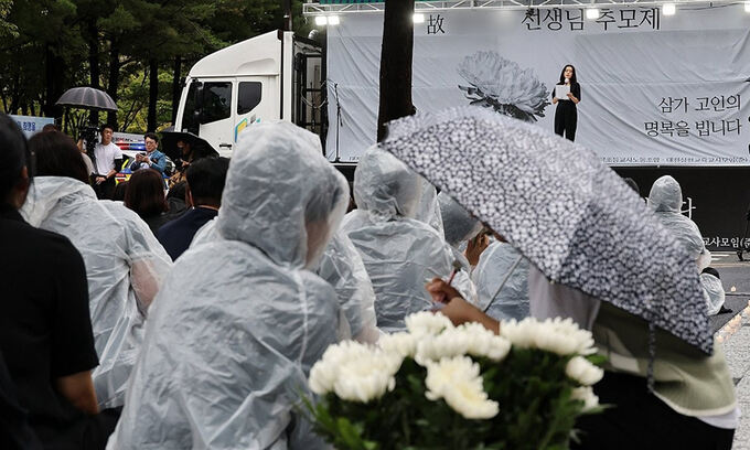 정수경 초등교사노조 위원장은 “이 사건은 선생님 개인의 일로 치부하면 안된다”며 “학생 뿐 아니라 학부모까지 정당한 생활지도에 민원을 제기하면서 교사의 손발을 다 묶어 놓았는데 선생님을 보호해줄 장치는 전무했다. 교육현장이 선생님을 극단으로 몬 것”이라고 했다.