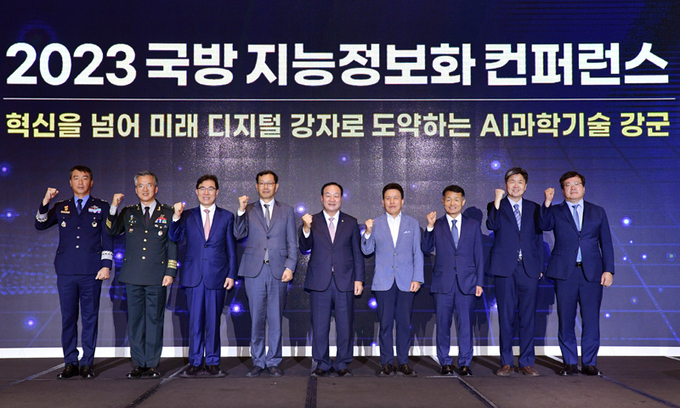 국방부는 19일 서울 드래곤시티 호텔에서 ‘2023 국방 지능정보화 컨퍼런스’를 개최했다고 밝혔다. ‘혁신을 넘어 미래 디지털 강자로 도약하는 인공지능(AI) 과학기술 강군’을 주제로 열린 이번 행사는 산·학·연·군 전문가 약 450명이 참석했다.