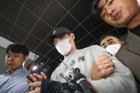홍씨는 서울중앙지방검찰청으로 송치되기 전인 이날 오전 7시56분쯤 강남경찰서 1층 로비에 모습을 드러냈다. 홍씨의 손목에는 호송줄이 감겨 있었으며, 얼굴은 검은색 야구모자와 흰색 마스크로 꽁꽁 가린 모습이었다.