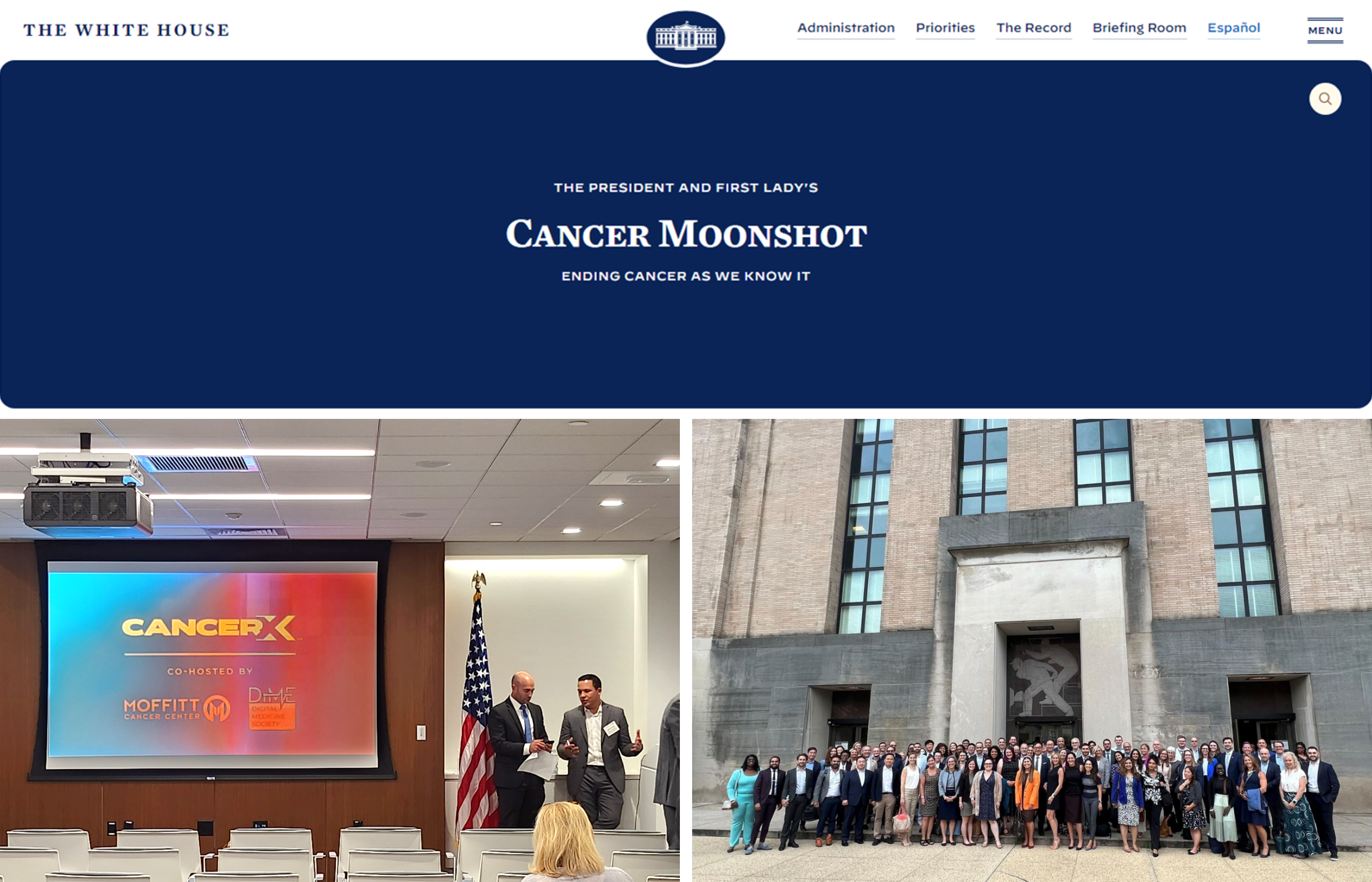 ㈜큐브바이오는 이러한 기술력을 인정받아 8월 4일 미국 바이든 정부의 캔서문샷(Cancer Moonshot) 프로젝트에 전격 참여하기로 결정되었다. 캔서문샷은 미국인 암 사망률을 향후 25년 동안 50% 줄이는 것을 목표로 암 진단과 치료에서 최신 기술들의 도입을 확대하고 이를 정책과 투자 측면에서 전폭적으로 지원하는 것을 핵심으로 한다. 2022년 바이든 대통령이 캔서문샷의 원활한 추진을 위해 별도의 내각(Cancer Cabinet)을 구성하였을 만큼 미국 정부에서 적극적으로 추진중이다. 캔서문샷은 미국 정부가 설립한 공공 민간 협력체 캔서엑스(CancerX)가 이끌며 주요 멤버로는 존슨앤존슨, 아스트라제네카, 다케다제약, 엠디앤더슨 암센터, 인텔, 아마존웹서비스 등이 있다.