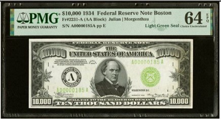 미국 금융박물관 웹사이트에 따르면 1만 달러 지폐는 지금까지 공개적으로 유통된 지폐 중 가장 고액권 지폐였다. 10만 달러 지폐는 연방준비은행 간 자금 이체에만 사용됐다.