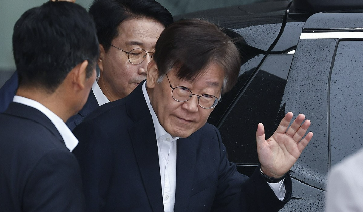 차량에 탑승한 이 대표는 지도부와 지지자들을 향해 또 한 번 손을 흔들고 법원으로 출발했다.