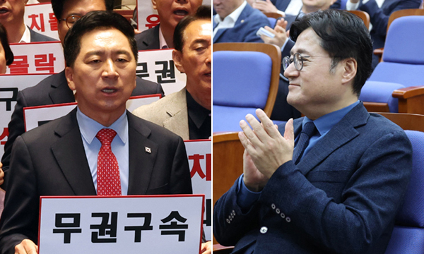 수세에 몰린 국민의힘은 ‘유권석방 무권구속’, ‘황제 판결’이라며 재판부에 비난을 퍼부었다. 아울러 법원이 이 대표의 일부 범죄 혐의에 대해 상당 부분 인정했고, 영장 기각이 무죄를 의미하지는 않는다는 점을 부각하며 민주당의 대통령 사과 요구에 반격했다.
