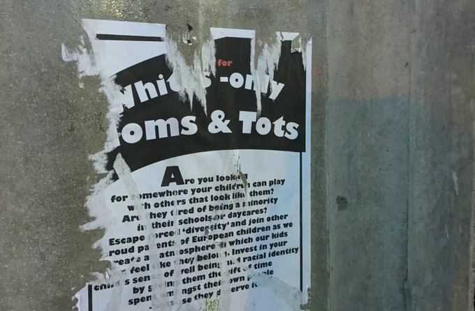전단에는 “비슷하게 생긴 아이들이 놀 수 있는 장소를 찾는 엄마들에게”, “우리 아이들이 소속감을 느끼는 분위기를 만들 수 있도록 자랑스러운 유럽인 자녀의 부모들은 동참해달라” 등의 내용이 담겨 있다.