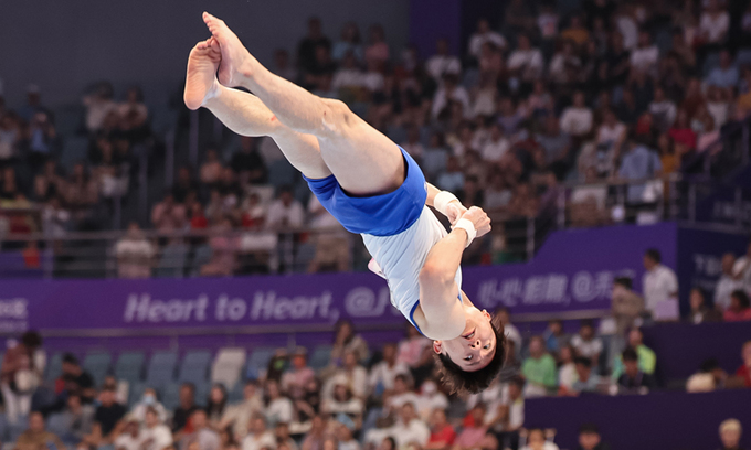 김한솔은 28일 중국 항저우 황룽 스포츠센터 체육관에서 열린 대회 마루운동 결승에서 8명의 출전자 중 가장 높은 14.900점을 획득했다.
