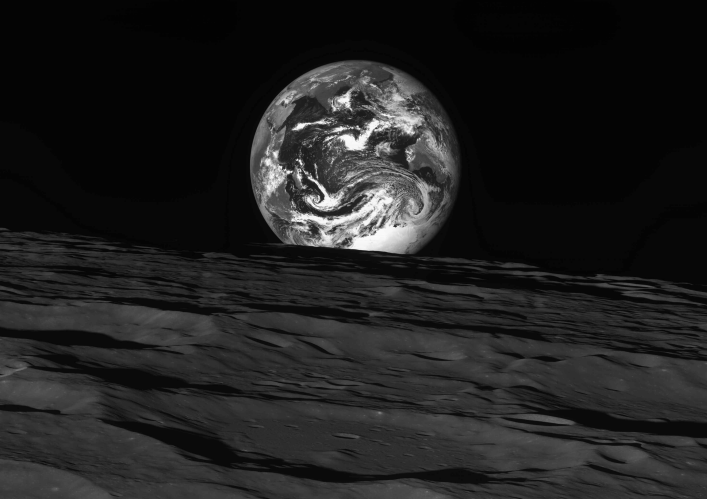 달 표면 뒤에 떠오른 지구. 지난해 12월 24일 다누리 찍은 사진이다. 한국항공우주연구원 제공