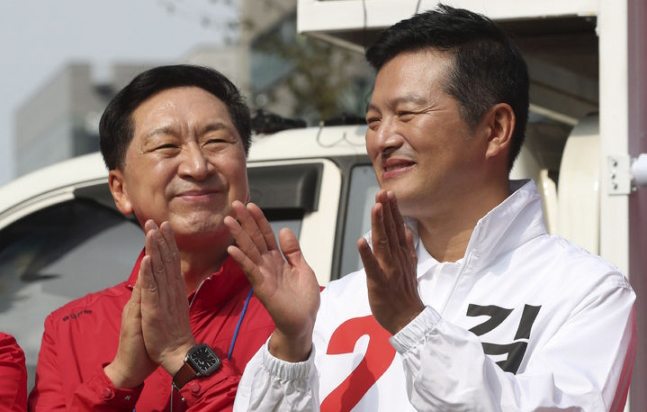앞서 김 후보는 지난 28일 선거대책위원회 출정식에서 '보궐선거 비용 40억원 책임' 공세에 대해 "(1년에 1000억원 넘게) 벌어드리기 위한 수수료 정도로 애교 있게 봐주시면 감사하겠다"고 말해 야권의 반발을 샀다.