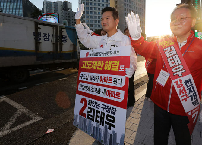 당 지도부는 민생 공약을 강조하고 지지층 결집을 호소하며 김 후보 지원에 힘을 쏟고 있다. 김 대표는 이날 “강서 지역은 고도 제한 때문에 다가구·다세대 주택 밀집 지역 문제가 해결되지 않았다”며 “재개발·재건축이 오랫동안 지연돼 왔는데 문제는 지난 16년 민주당 구청장에게 맡겼더니 하나도 달라진 게 없다. 한 번씩 바꿔봐야 정신을 차리지 계속 밀어주면 정신을 안 차린다”고 비판했다.