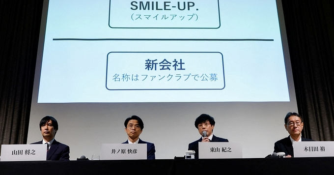 히가시야마 노리유키는 사명 변경 후 성폭력을 당한 피해자 배상 업무만 전념하고, 매니지먼트 관련 업무는 스마일업이 전담한다. 피해자 보상은 오는 11월부터 진행된다.
