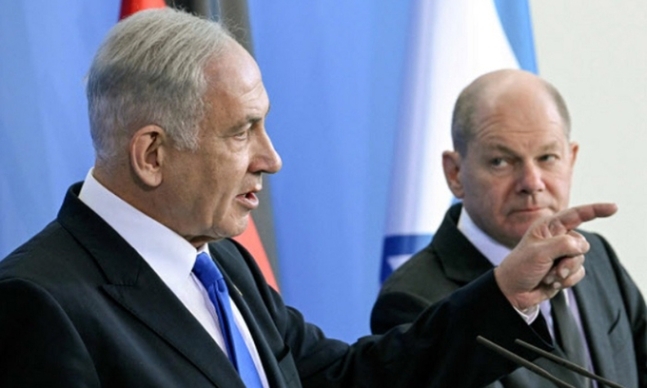 올해 3월 독일 베를린을 방문한 베냐민 네타냐후 이스라엘 총리(왼쪽)가 올라프 숄츠 독일 총리와의 정상회담 후 공동 기자회견을 하고 있다. AFP연합뉴스