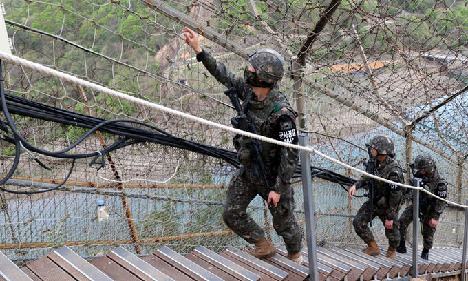 11일 국방부에 따르면 우리 군은 인구절벽으로 군 규모가 감소하는 데 따른 휴전선·해안 경계 공백을 일반전초(GOP) 과학화경계시스템으로 대체하고 있다. 철책에 설치된 광망에서 북한군 침투로 보이는 절단·훼손·충격 등이 감지되면 병력이 출동해 확인한다. 고성능 카메라를 활용한 감시·추적도 이뤄진다. 국방혁신 4.0 일환으로 철책 경계를 인공지능(AI) 드론·로봇이나 무인 초소 등으로 구성된 시스템에 맡기는 방안도 추진되고 있다. 하지만 가자지구에 있던 이스라엘의 경계 시스템이 하마스 공격에 무력화되면서 과학기술에 지나치게 의존하는 것은 부적절하다는 의견이 나오고 있다. 하마스처럼 북한이 다량의 로켓포를 한꺼번에 쏘고 패러글라이더나 땅굴, 드론, 고속상륙정 등을 통해 기습 공격을 감행할 수 있다는 우려도 크다.