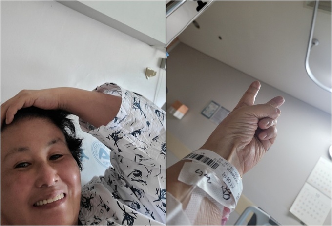 아울러 입원 중인 자신의 모습이 담긴 사진 2장도 공개했다.