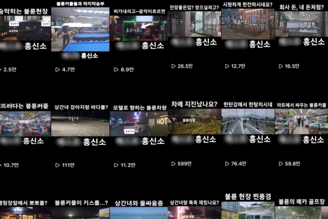 16일 팔로워가 2만여명에 달하는 인스타그램 ‘XX흥신소’ 계정에는 ‘불륜의 메카 골프장’, ‘벚꽃놀이 추격전’, ‘모텔로 향하는 불륜 차량’ 등 제목의 영상이 수십개 올라왔다.