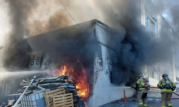 17일 소방당국에 따르면 이날 오후 1시 50분쯤 대전시 대덕구 대화동 한 아파트단지 내 상가에서 폭발음과 함께 화재가 발생해 상가 한 동이 탔다.
