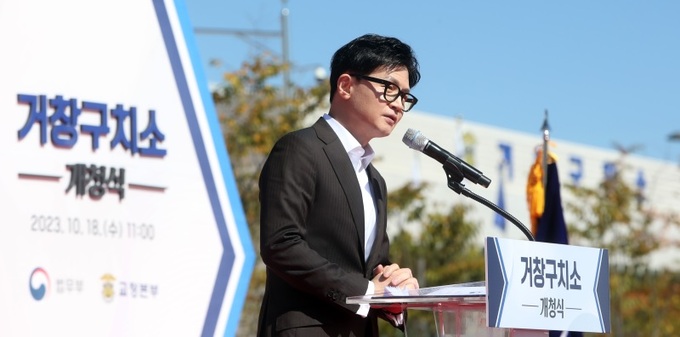 한 장관은 18일 신용해 교정본부장과 최만림 경상남도 행정부지사, 구인모 거창군수 등 인사와 지역 주민 등이 참석한 가운데 열린 거창구치소 개청식 축사에서 교정시설 설치는 법무부가 하는 일 중 ‘가장 해내기 어려운 일’일지도 모른다며, 찬성하는 생각이나 반대 의견 모두 ‘말이 되는 이야기’라고 우선 의미를 짚었다. 누구나 자신과 가족이 살아갈 터전과 관련된 일은 쉬이 양보하거나 타협하기 어렵고 그 과정에서 의견 불일치의 ‘평행선’을 그릴 수 있다면서다.