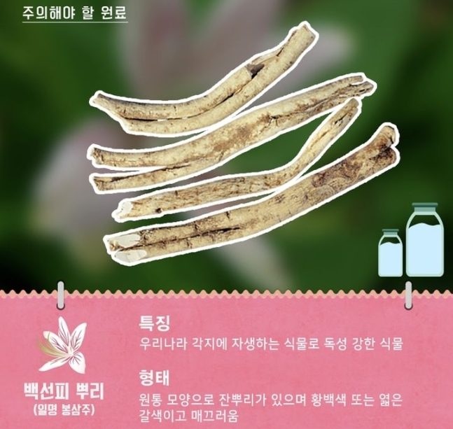 19일 의료계에 따르면 백선은 뿌리 모양이 봉황과 닮아 봉삼으로 불리지만, 잘못 먹을 경우 간 중독 등을 일으킬 수 있는 위험한 식물이다.