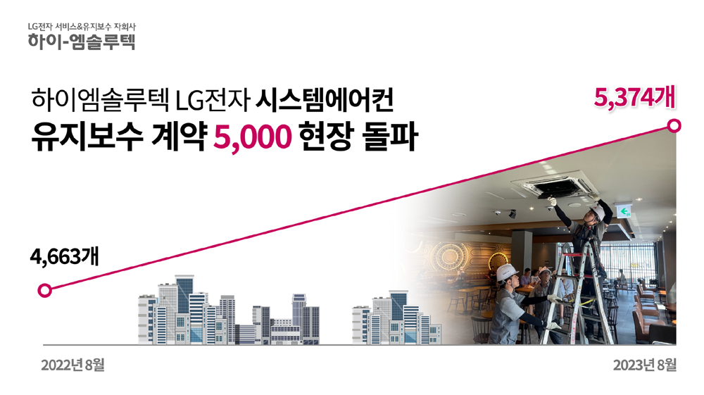 LG전자 시스템에어컨과 칠러 및 공조 설비 서비스 유지·보수를 전담하는 '하이엠솔루텍(대표 유광열)'이 올해 시스템에어컨 유지보수 계약 5,000개 현장을 돌파했다고 20일 밝혔다.