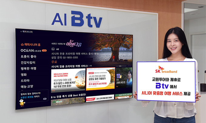 SK브로드밴드가 시니어 전용 여행 브랜드 ‘여행다움‘을 운영하는 교원투어와 제휴해 시니어 맞춤 여행 서비스를 Btv에서 시작한다.