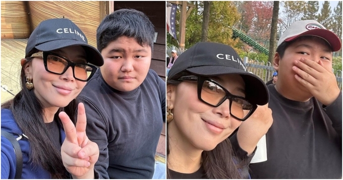 27일 오윤아는 아들과 함께 놀이공원에서 찍은 사진을 올리며 “이때까지만 해도 괜찮았는데, 에버랜드에서 난리가 났다. 너무 죄송하다”고 사과했다.